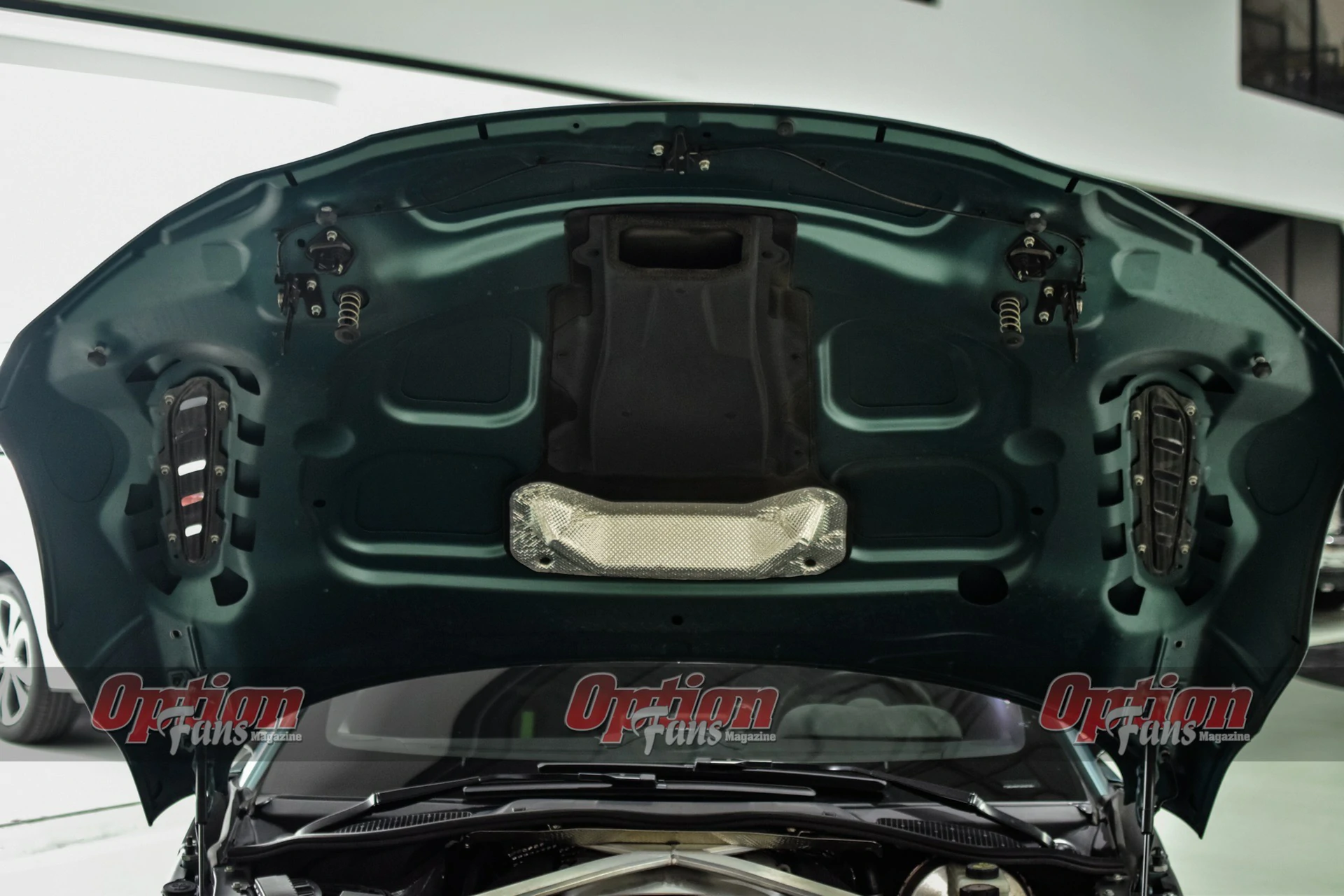 因為需要重心居中增強彎道性能,引擎前中置,所以車頭太長,引擎上方做了三角結構補強。