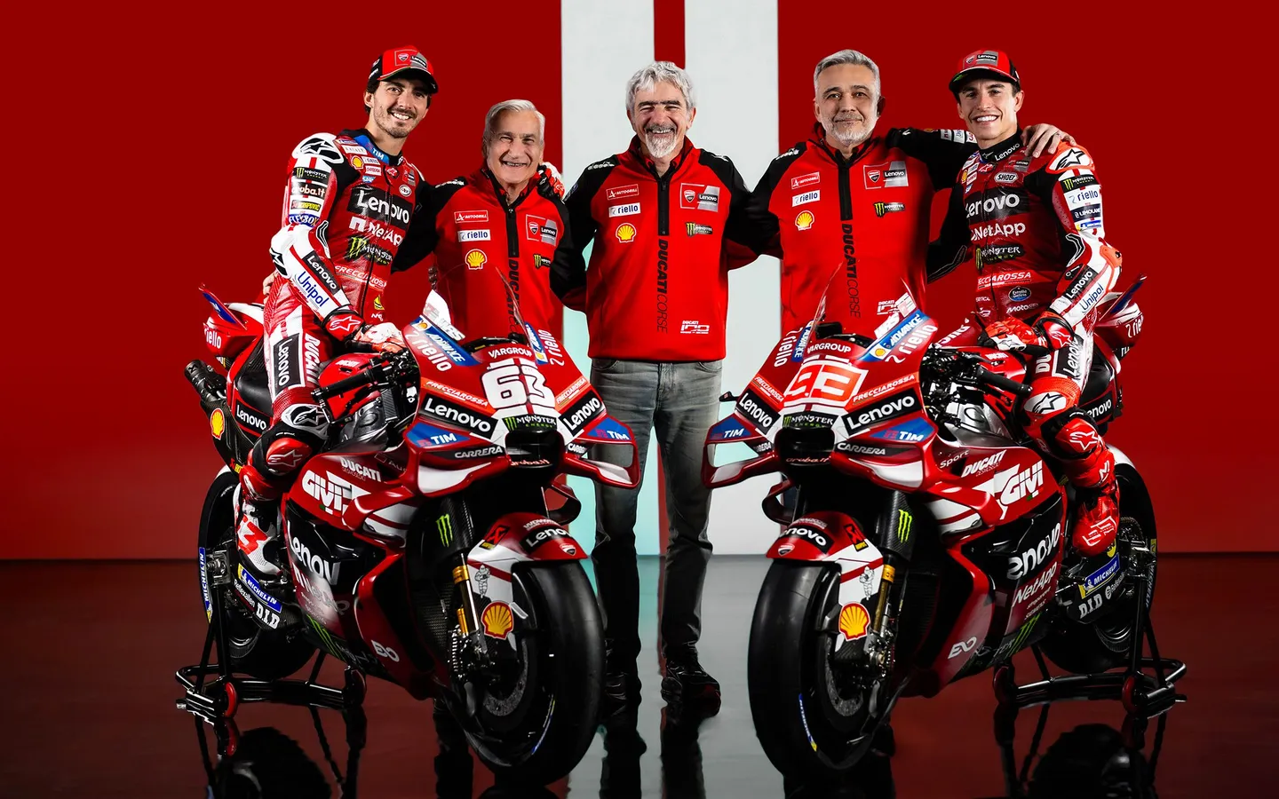 Ducati Lenovo Team即係杜卡迪廠隊,車手保持Marc Marquez搭檔Francesco Bagnaia(Pecco)雙冠軍陣容。恰逢2026又系杜卡迪電單車廠100週年紀念,對應塗裝推出名為Rosso Centenario嘅啞光暗調紅色。但舊年Pecco全程不適應賽車,9冠王Marquez卻順利打破已退役8冠王Valentino Rossi嘅紀錄奪冠,這二人當年直接交鋒導致“Rossi Leg”事件結仇眾所周知,而Pecco正是Rossi嘅弟子,一直關注Moto GP嘅車迷應該知道的杜卡迪車隊光鮮背後嘅故事。