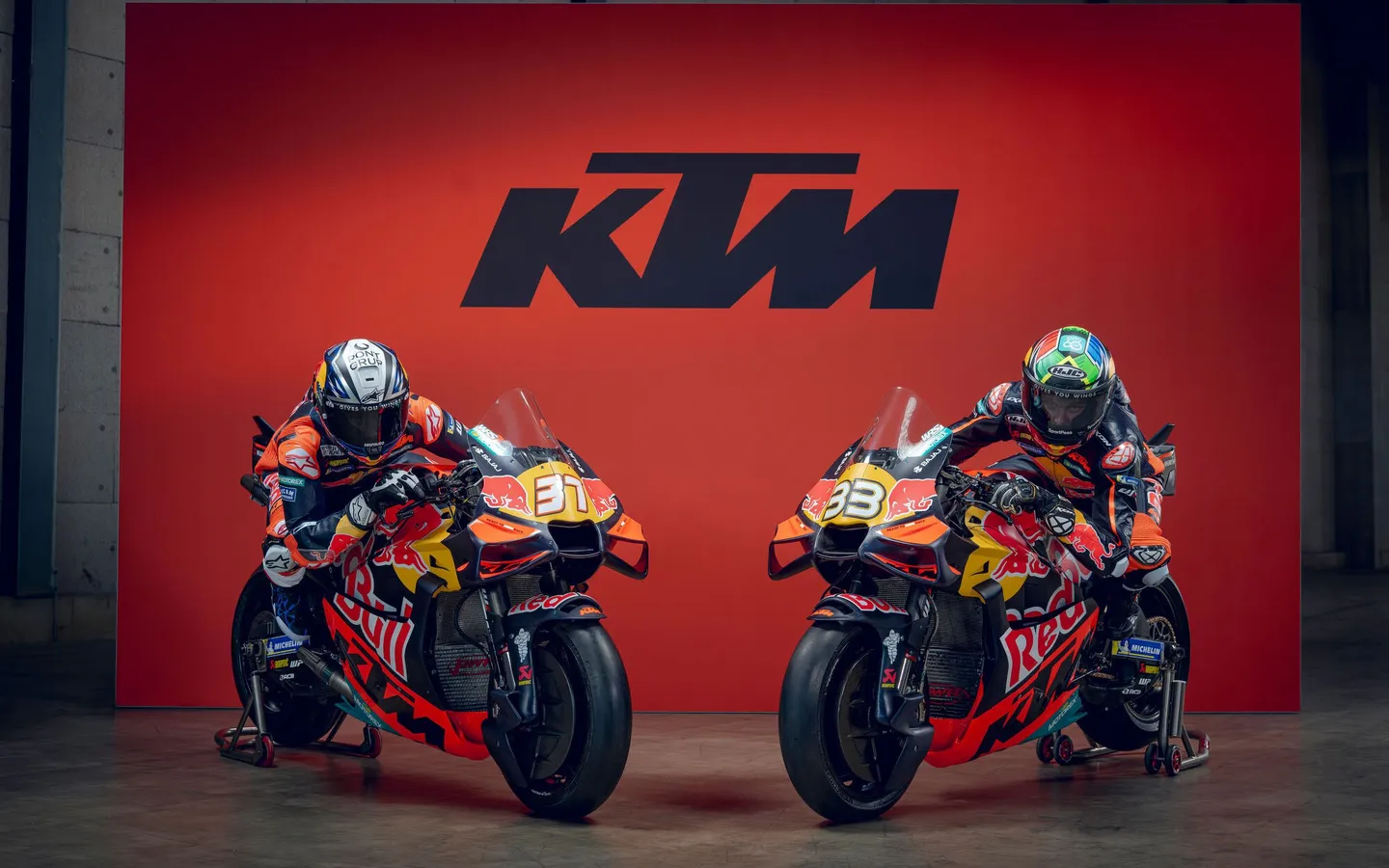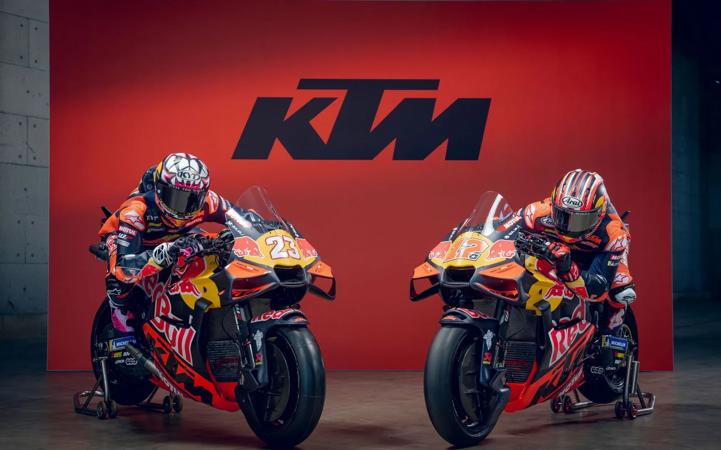 為左表示全陣營上下齊心,KTM直接兩支車隊一齊發佈,分別系Red Bull KTM Factory Racing即KTM廠隊,車手Pedro Acosta搭檔Bred Binder;Red Bull KTM Tech 3 即KTM二隊,車手Enea Bastianini搭檔Maverick Viñales。KTM陣營製勝策略簡單粗暴,除咗大力出奇跡,拿下Moto GP歷史最高直路尾速紀錄366Km/h;仲有4打2戰術,兩支車隊一視同仁,採取完全一樣嘅4架賽車不分一二隊;而且車手配置方面都系老車手搭稍微年輕嘅潛力車手,車手之間關係融洽,目前團隊凝聚力可謂全場最高,Bastianini好鬼靚仔!