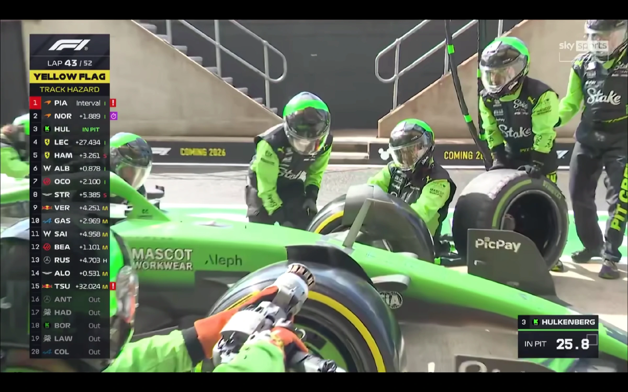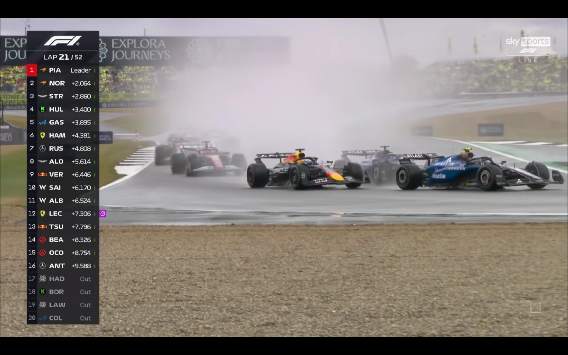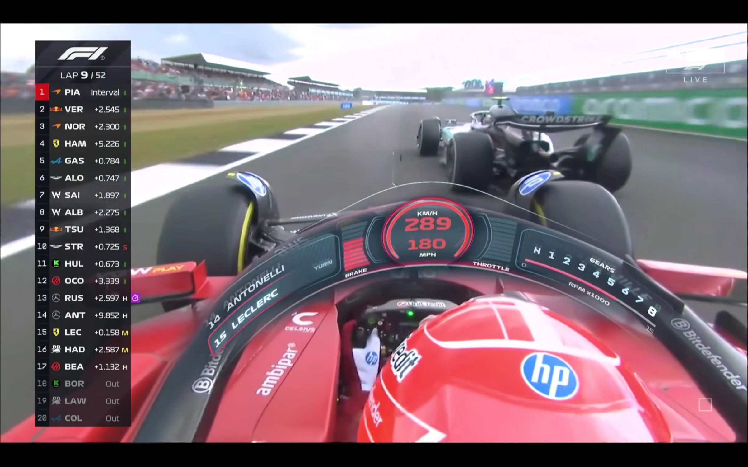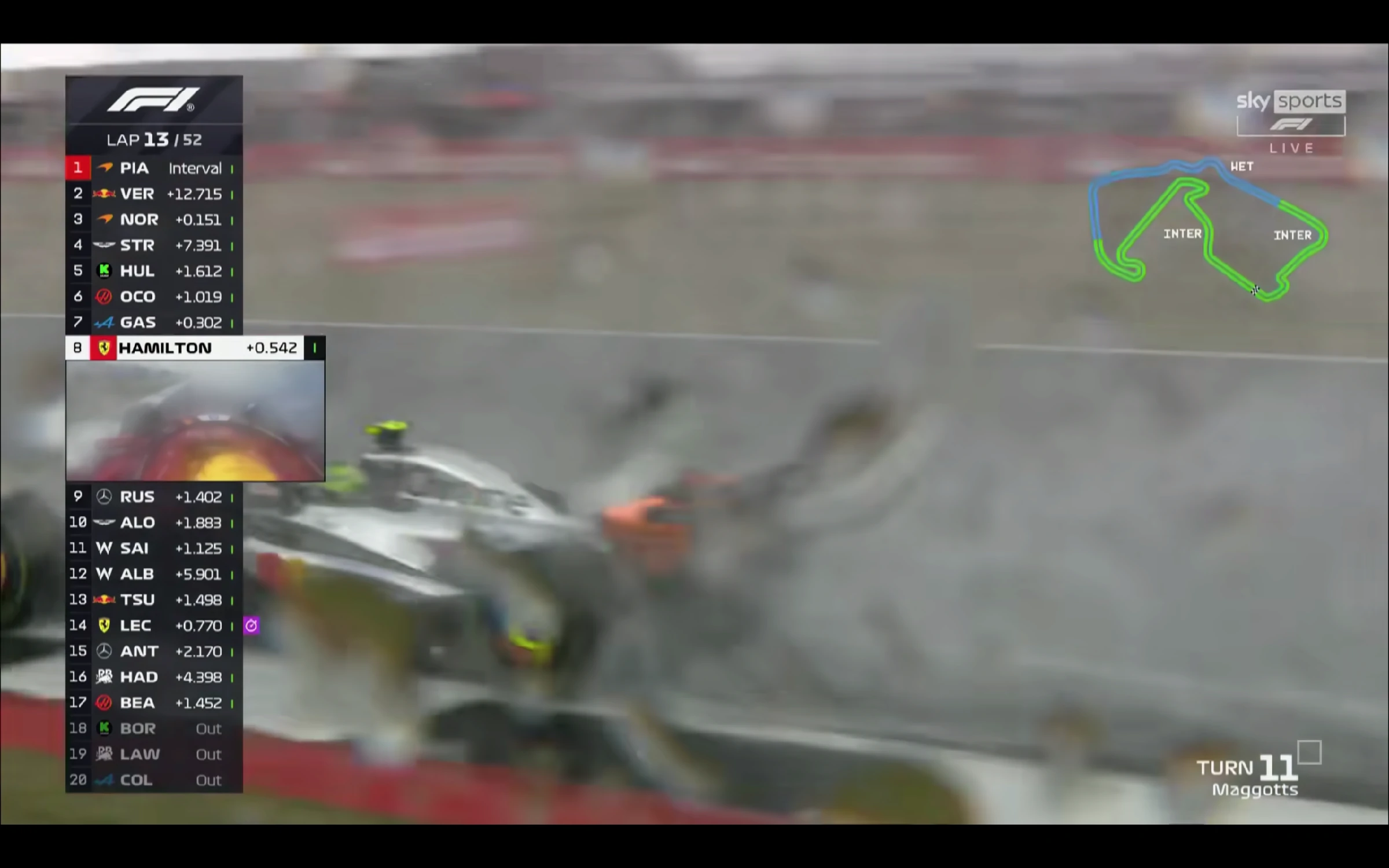 更神奇嘅係,ANT憑藉先手入Pit企圖Under cut LEC,被法拉利召入防守回應,遭遇冷胎出Pit即鬥。ANT企圖用熱胎優勢做低LEC,點知顯然經驗不足,發動咗一次看似愚蠢但其實並無選擇的超遠距離進攻,直接攬炒咗LEC雙退。自此HAD身後的威脅,法拉利以及平治所有豪門賽車,全部退賽或失去競爭力,HAD坐穩P4。