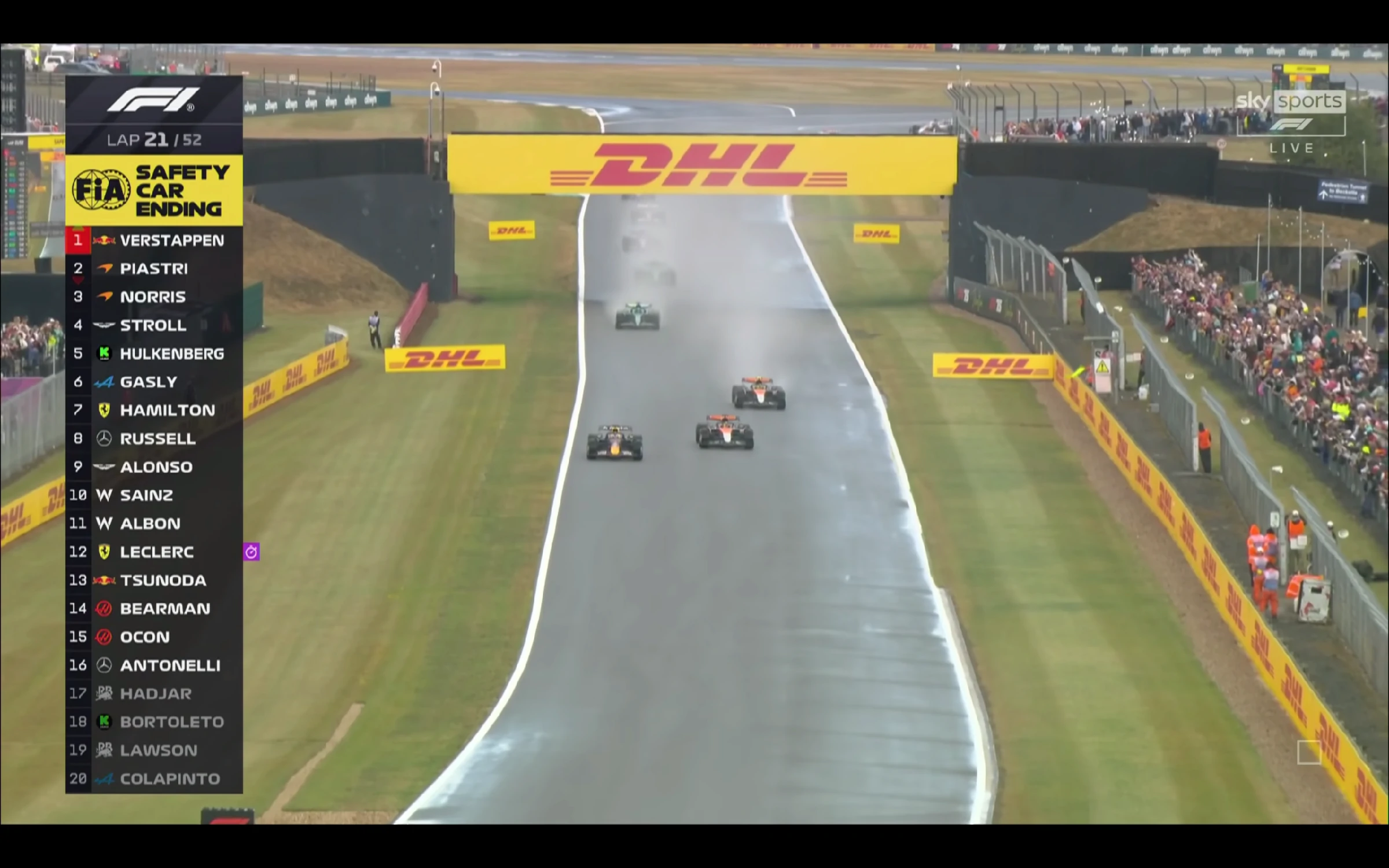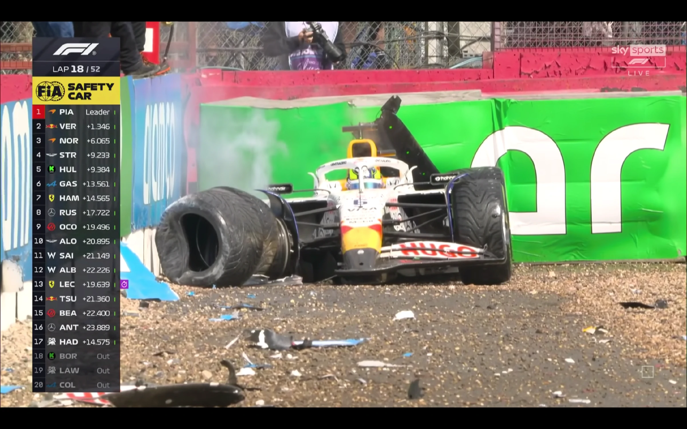 此時,HAD默默許願,如果前方有人再退賽,自己就可以登上人生第一個最高級別賽車的領獎台了!或許係HAD足夠虔誠,好快麥拿倫車隊的羅禮士(NOR)發生漏油,P2退賽;HAD升P3!安全車壓縮車陣,比賽準備重啟,對於HAD來講,係機會亦都係挑戰,畢竟揸得F1賽車,無個系善男信女。