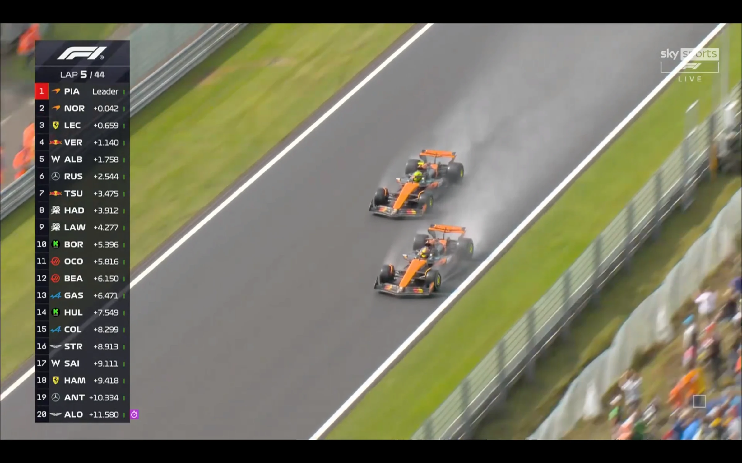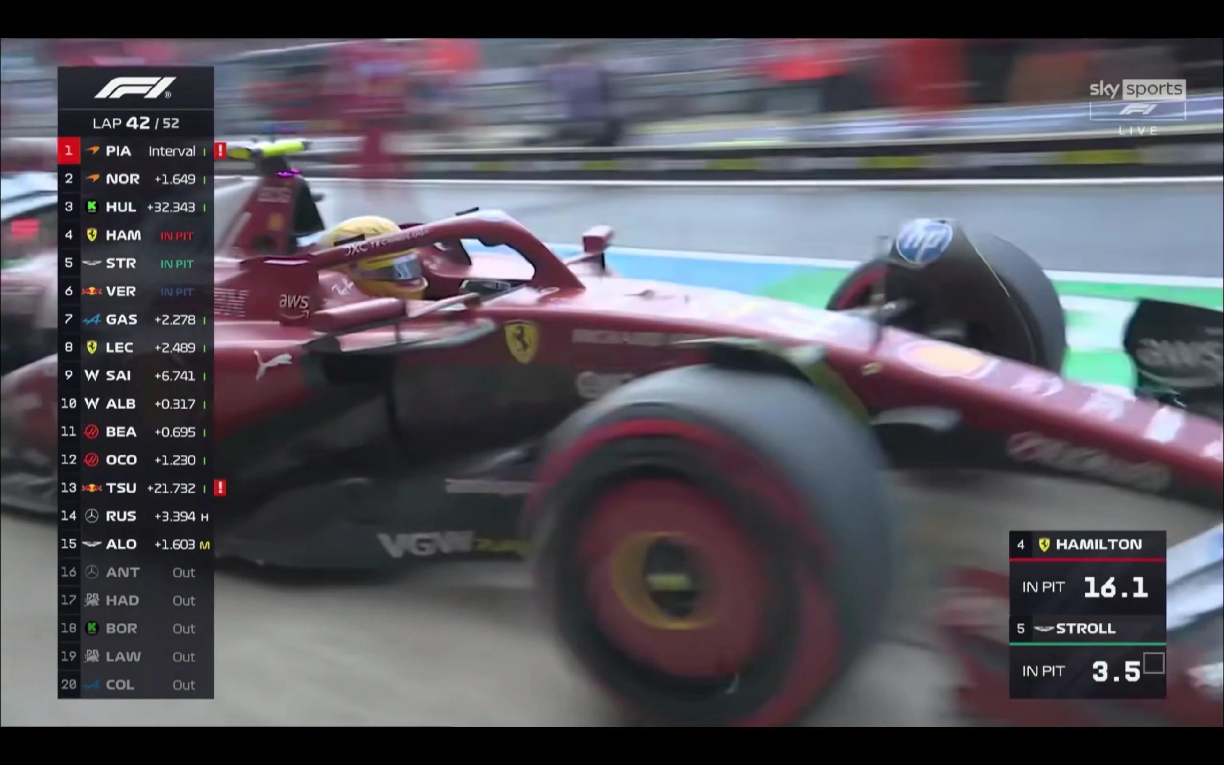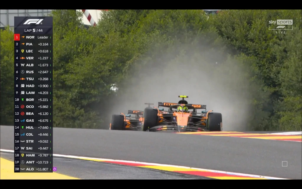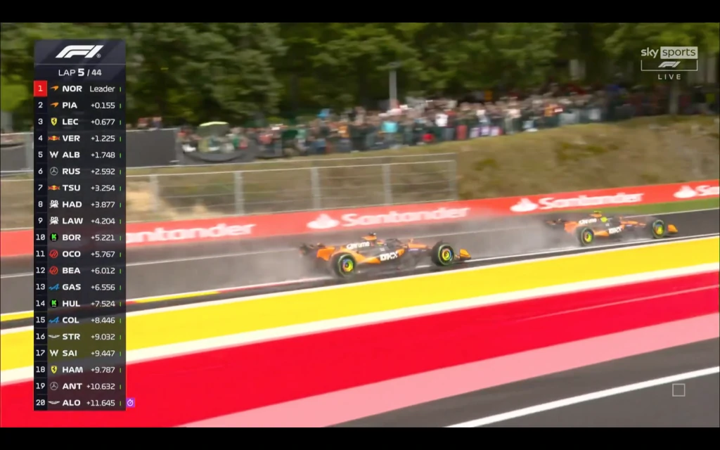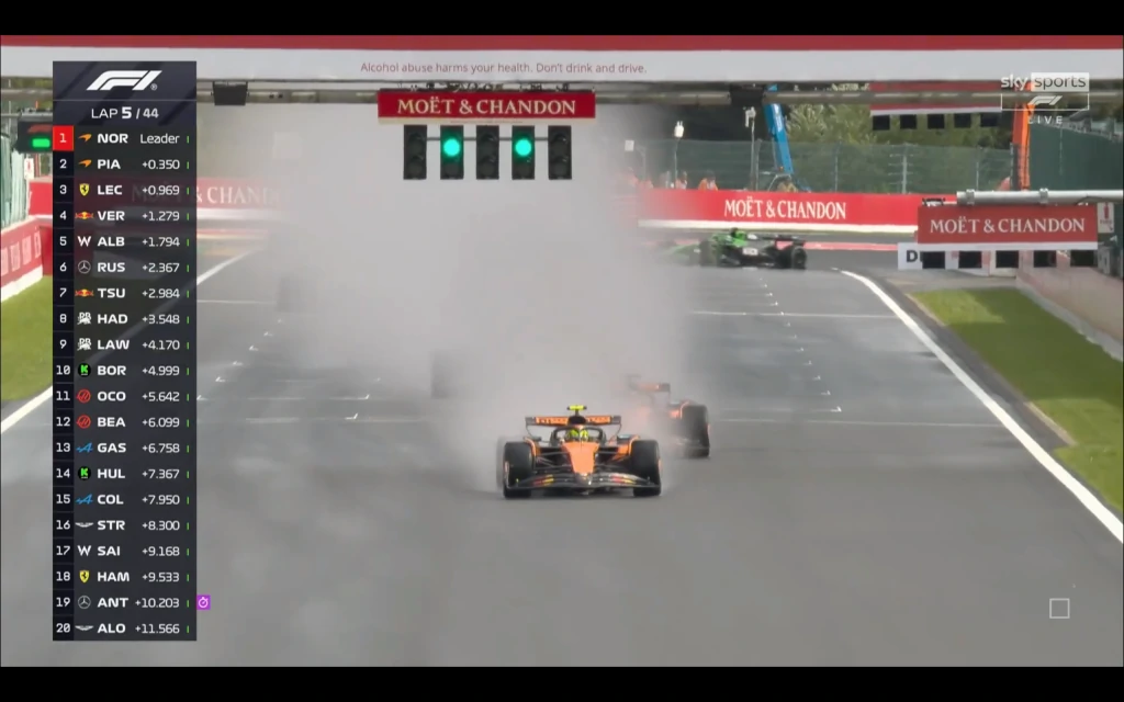 神奇嘅係,比賽由一開始,LEC就安安分分咁跟咗係HAD身後並無太多動作。甚至LEC第一次入站被法拉利隊友HAM炒車引發黃旗減速搞禍,反而跌位置。