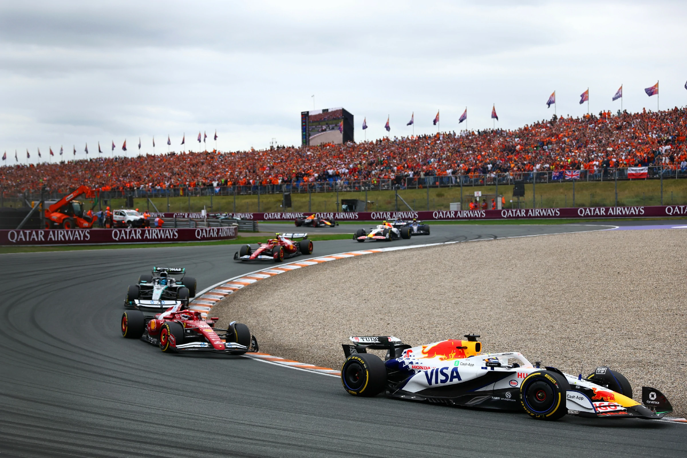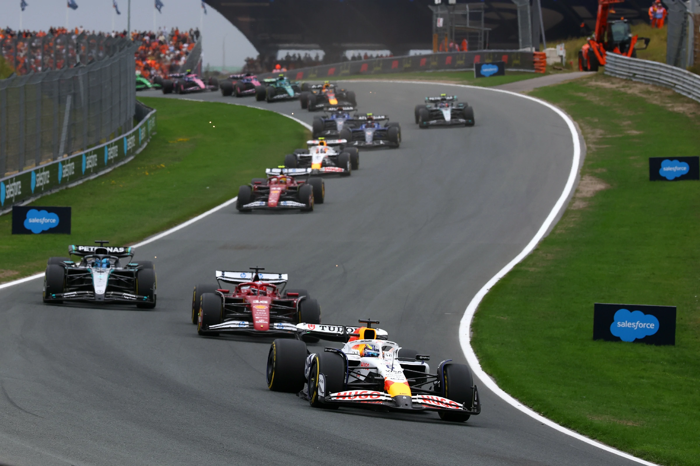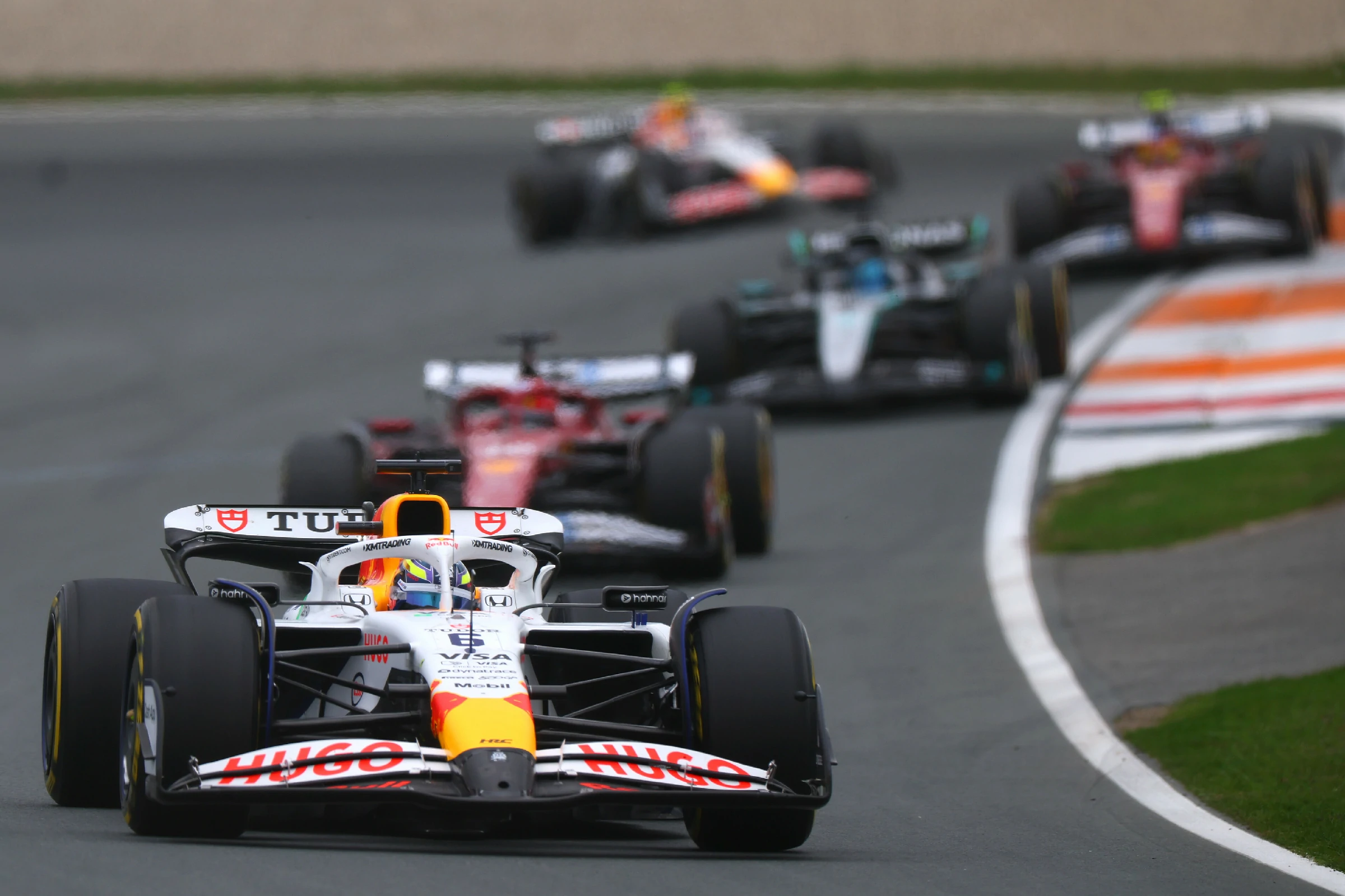 同老兵逆襲「劇本」有所不同,今次荷蘭站HAD由一開始就順風順水,排位賽超常發揮豪取P4,據說係得益一陣“順風”。身後跟住法拉利車隊陸克萊(LEC)、平治車隊羅素(RUS)兩位“大佬”級人物,形成麻鷹捉雞仔陣勢。