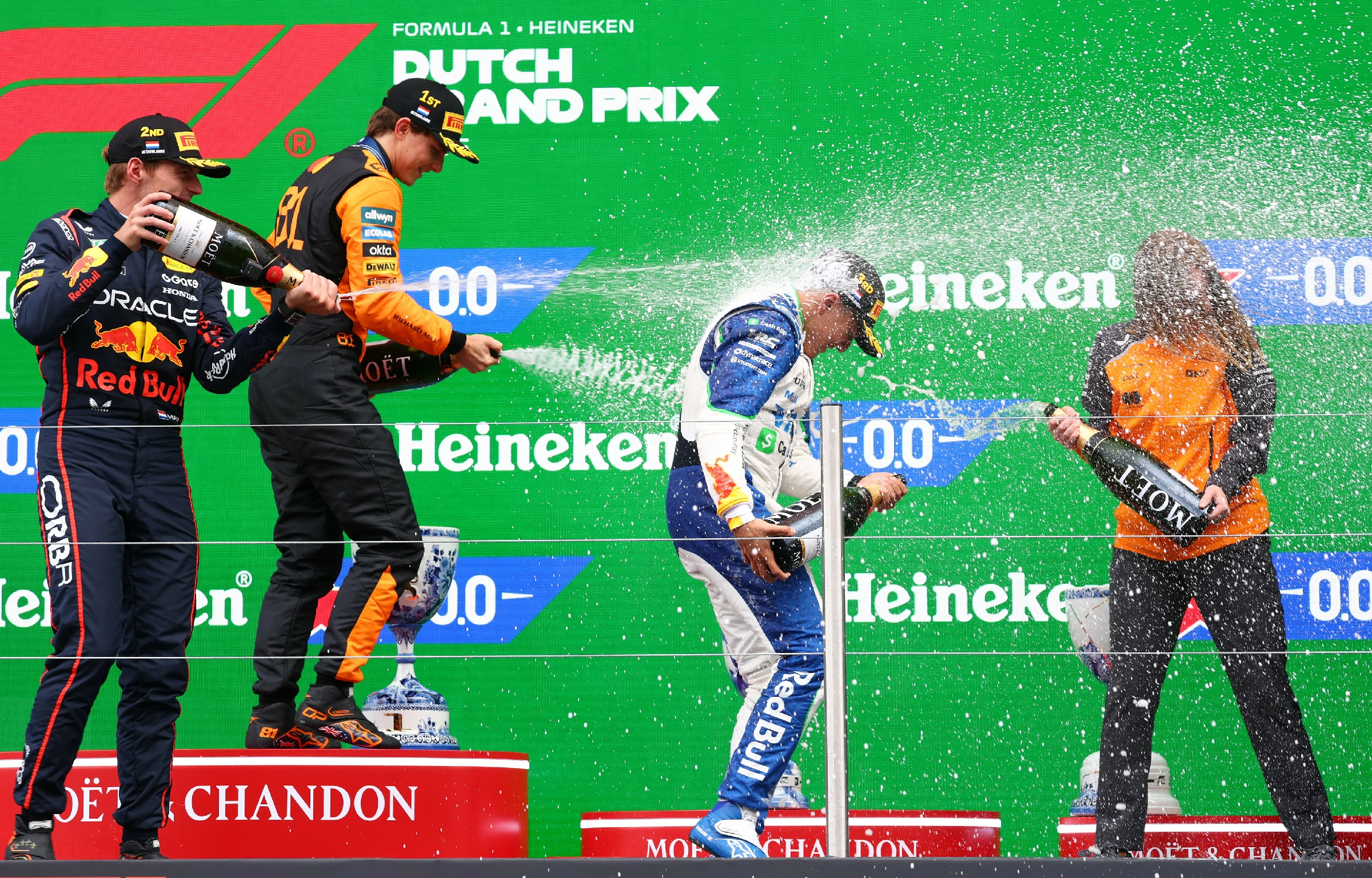 FORMULA 1 HEINEKEN DUTCH GRAND PRIX 2025 – RACE RESULT 29 – 31 Aug 2025 POS. NO. DRIVER TEAM LAPS TIME / RETIRED PTS. 1 81 Oscar Piastri McLaren 72 0.06840103 25 2 1 Max Verstappen Red Bull Racing 72 +1.271s 18 3 6 Isack Hadjar Racing Bulls 72 +3.233s 15 4 63 George Russell Mercedes 72 +5.654s 12 5 23 Alexander Albon Williams 72 +6.327s 10 6 87 Oliver Bearman Haas 72 +9.044s 8 7 18 Lance Stroll Aston Martin 72 +9.497s 6 8 14 Fernando Alonso Aston Martin 72 +11.709s 4 9 22 Yuki Tsunoda Red Bull Racing 72 +13.597s 2 10 31 Esteban Ocon Haas 72 +14.063s 1 11 43 Franco Colapinto Alpine 72 +14.511s 0 12 30 Liam Lawson Racing Bulls 72 +17.063s 0 13 55 Carlos Sainz Williams 72 +17.376s 0 14 27 Nico Hulkenberg Kick Sauber 72 +19.725s 0 15 5 Gabriel Bortoleto Kick Sauber 72 +21.565s 0 16 12 Kimi Antonelli Mercedes 72 +22.029s 0 17 10 Pierre Gasly Alpine 72 +23.629s 0 18 4 Lando Norris McLaren 64 DNF 0 NC 16 Charles Leclerc Ferrari 52 DNF 0 NC 44 Lewis Hamilton Ferrari 22 DNF 0